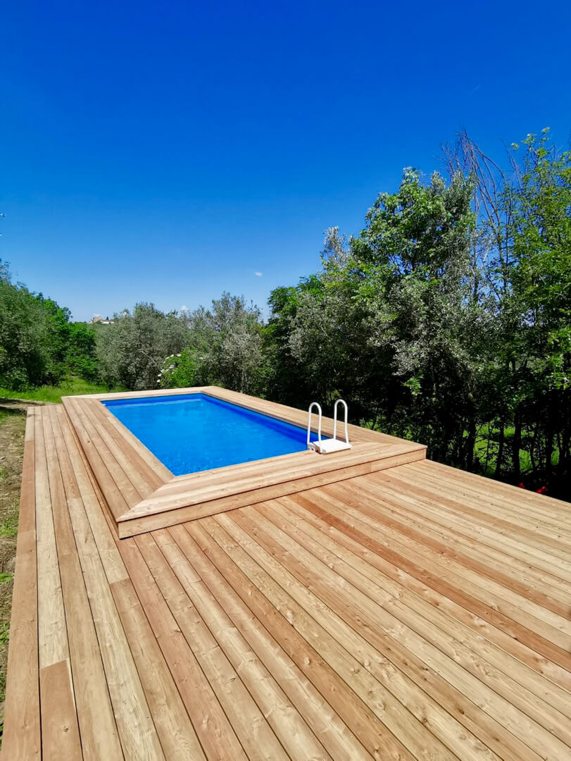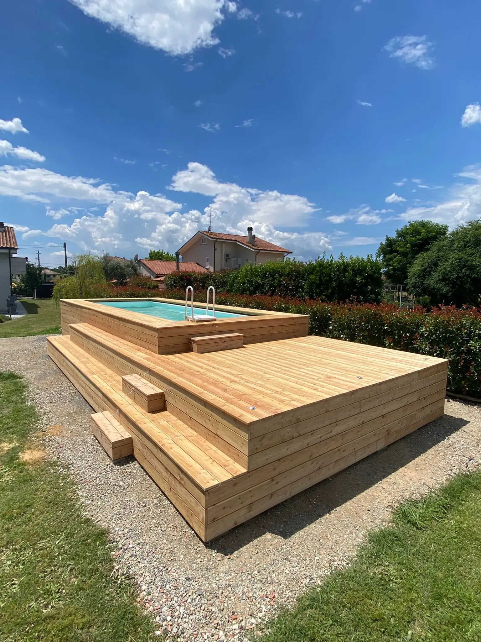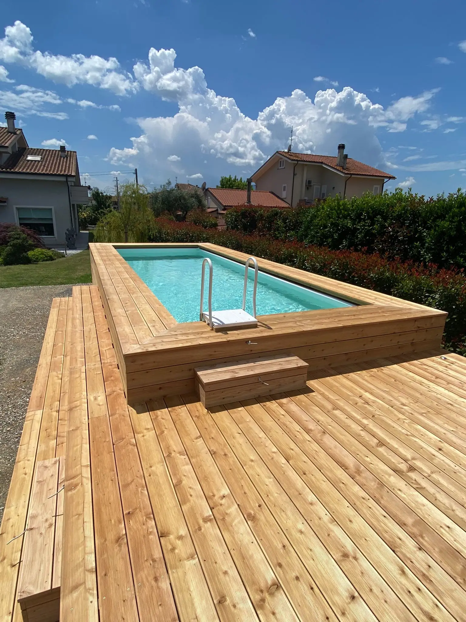 Le piscine fuoriterra con deck in legno rappresentano una soluzione intelligente e raffinata per chi desidera l’eleganza di una piscina interrata, senza affrontare opere murarie complesse o vincoli burocratici.