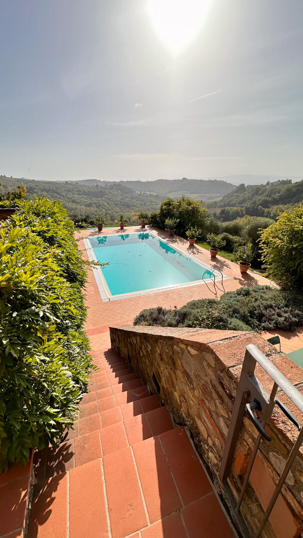 L’acqua scorre a filo del bordo e si raccoglie in una vasca di compenso, creando il celebre effetto specchio che amplifica la luce e fonde la piscina con l’ambiente.